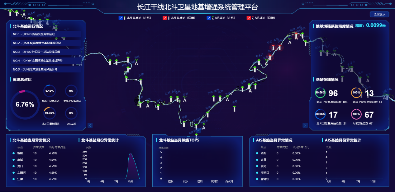以基站设备数据、AIS船舶数据和北斗船舶数据为基础,搭配二维电子航道图数据,结合三维技术,实现对基站和终端设备的监控与管理。