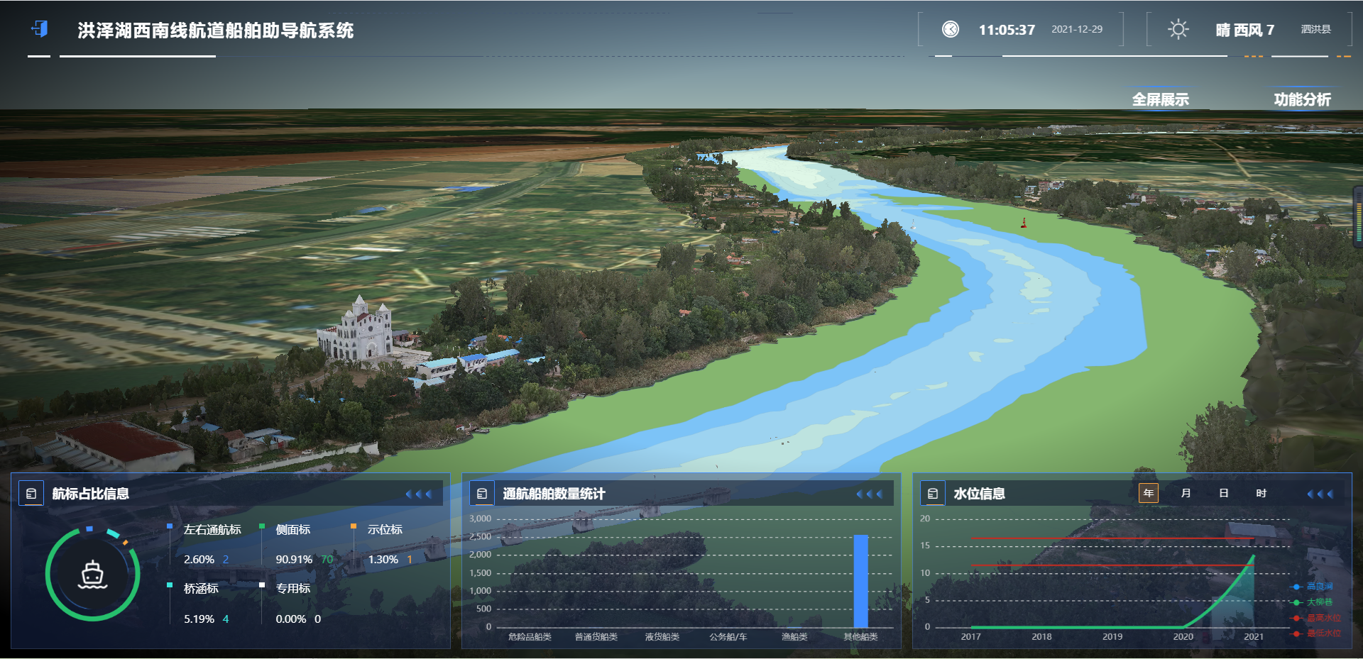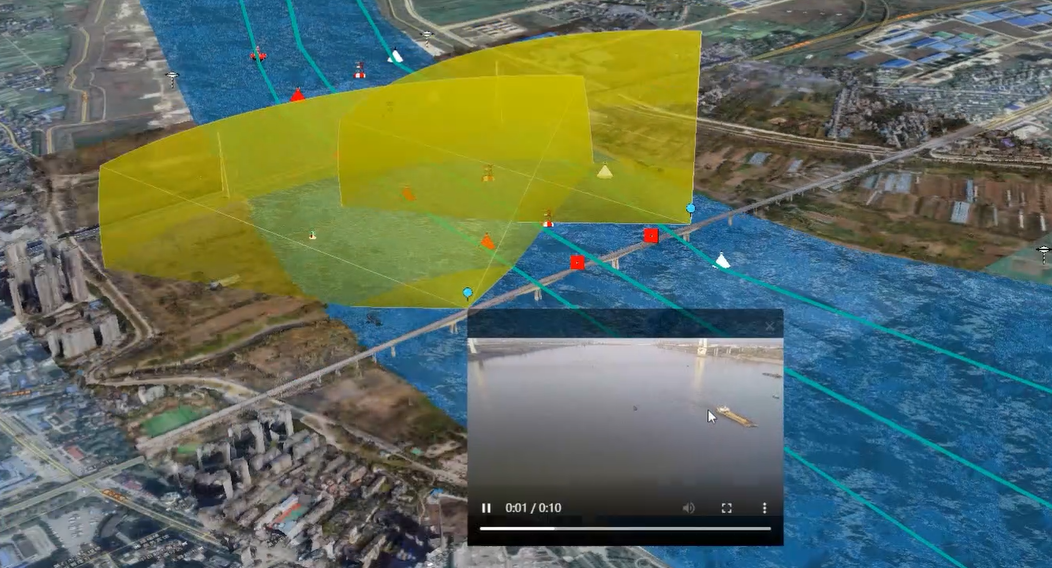 通过对地形地貌、涉河建筑、通航情况等进行三维实景展示,对水域海事要素进行可视化管理,对所有的传感设备进行协同感知,并结合具体的业务场景进行定制化分析,全方位赋能智慧海事三维应用。