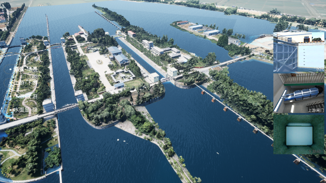 数字孪生船闸应用是以船闸部件为单元、船闸模型为核心、过闸业务为驱动,对船闸全要素和船舶过闸场景的数字化映射,为船闸设备管理、待闸信息、闸次计划、档位图等信息查看提供直观的场景信息。