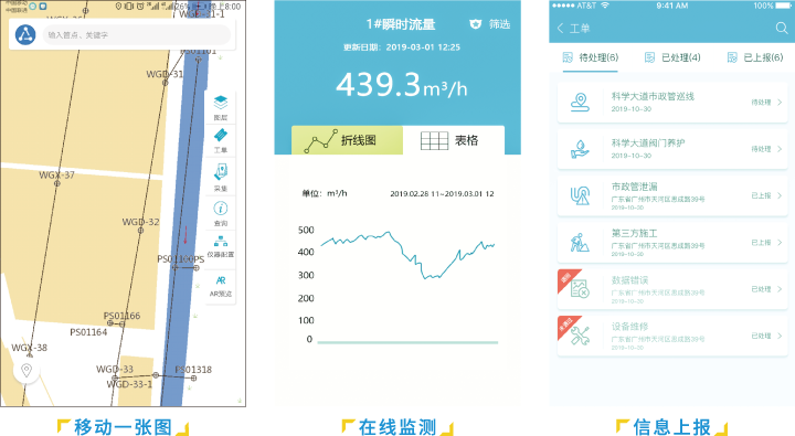 智慧管网APP可与高精度定位设备结合,实现地下管网内外业一体化采集、快速浏览、在线监测、巡检养护、防汛指挥、AR浏览等功能,实现对管网情况全程监管,轻松体验新一代立体移动信息化管理模式。
