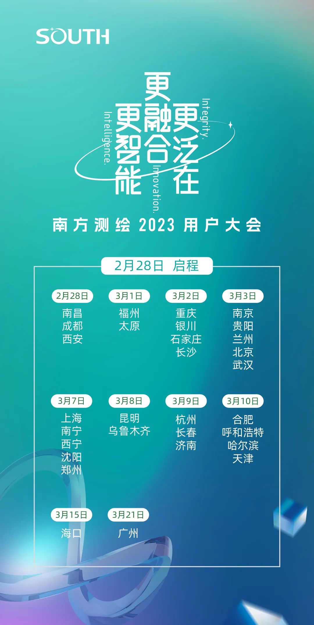 本次用户大会,南方智能将带来自然资源信息化、新型基础测绘与实景三维中国、智慧城市等领域新技术、新产品、新应用,旨在为广大用户带来更智能、更融合、更泛在的全流程解决方案!
